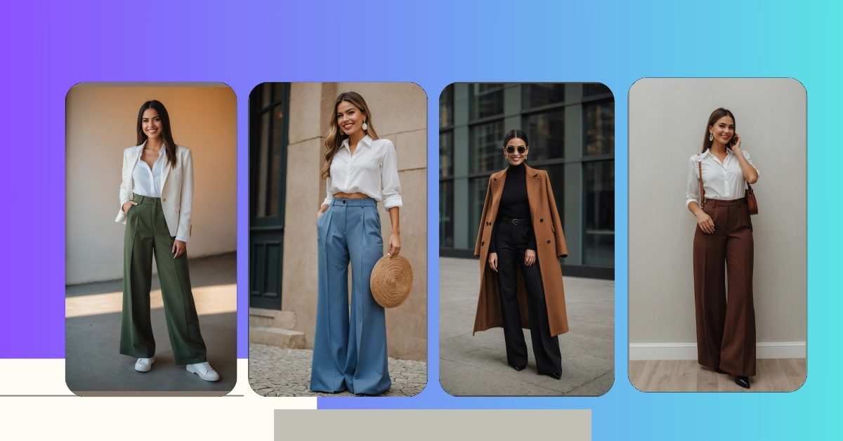 Now, if you’re a fan of classy outfits, you won’t want to miss incorporating black and cream into your wide leg wardrobe. These colors never go out of style, and when combined with a chic blouse, they transform your look from “meh” to “wow” in seconds. Just imagine striding into a meeting in navy wide leg trousers paired with a fitted white shirt and a blazer — talk about impressing the boss! And on the flip side, for those days when you just want to feel cozy, throw on a casual oversized knit with your brown trousers, and you’re ready to conquer the world, or at least brunch with friends.