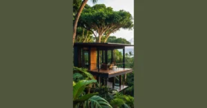 This cozy little cottage is perfect for anyone who wants to escape the hustle and bustle of city life and live in a peaceful, secluded place. It’s like a mini-mansion, with everything you need in a compact and efficient space. Imagine waking up to the sound of birds chirping and having your morning coffee on the porch, surrounded by lush greenery. You can almost feel the fresh air and smell the pine trees from this image!