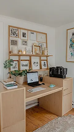 This desk isn’t just organized; it’s a masterpiece! Imagine having a workspace so aesthetically pleasing, you’d actually *want* to do your homework. With all those pretty plants and artwork, it’s like your desk is a mini-botanical garden mixed with an art gallery. Forget stressing over assignments— this setup is so calming, you might find yourself actually *enjoying* those study sessions. Who knew tidying up could be so stylish?
