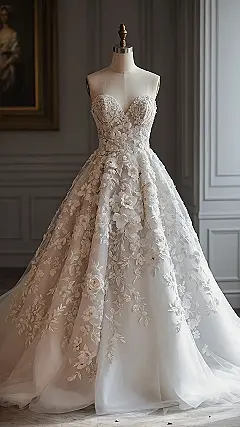 Timeless Fitted Styles: Embrace 3D Floral Wedding Dress Trends** **