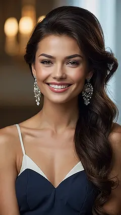 **Paragraph 1:** Check out this gorgeous hairstyle! It’s like, seriously elegant, right? Imagine walking into a fancy party, and all eyes are on you – not just because of your amazing dress (which, let’s be honest, is also killer), but because your hair looks like a million bucks. This isn’t your grandma’s boring bun; this is a long, classy hairstyle with some serious volume and waves. It’s the kind of hair that makes you feel confident enough to conquer the world… or at least that awkward school dance.