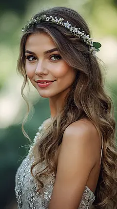 Who knew even fairies sometimes want a hair makeover? Maybe Tinkerbell was having one of those days where she thought, “My short hair is great for flying, but what about formal events?” This gorgeous wavy style, complete with those lovely face-framing pieces and that elegant flower crown, proves that you don’t need a super short cut to look absolutely magical. It’s like she’s saying, “I can still bring the pixie dust, but I’m doing it with hair that could star in its own shampoo commercial!” This look is perfect for anyone wanting a touch of fairy tale glam without having to cut off all their hair – proving that sometimes, even Tinkerbell wants to let her hair down, literally.
