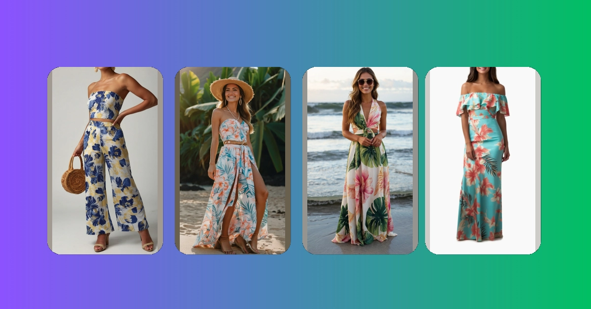 This picture screams “Hawaii vacation goals!” Imagine yourself strolling along a crystal-clear beach in a stunning floral outfit, the sun warming your skin, and the gentle ocean breeze playing with your hair. This two-piece wonder is perfect for a day of exploring hidden coves, chasing away the stress, and taking some seriously Instagram-worthy pictures. Forget about packing a million different outfits—this one’s got you covered, from beach bum to sunset cocktails. It’s basically the epitome of what women’s Hawaii outfits should be: effortless, stylish, and ready for adventure!