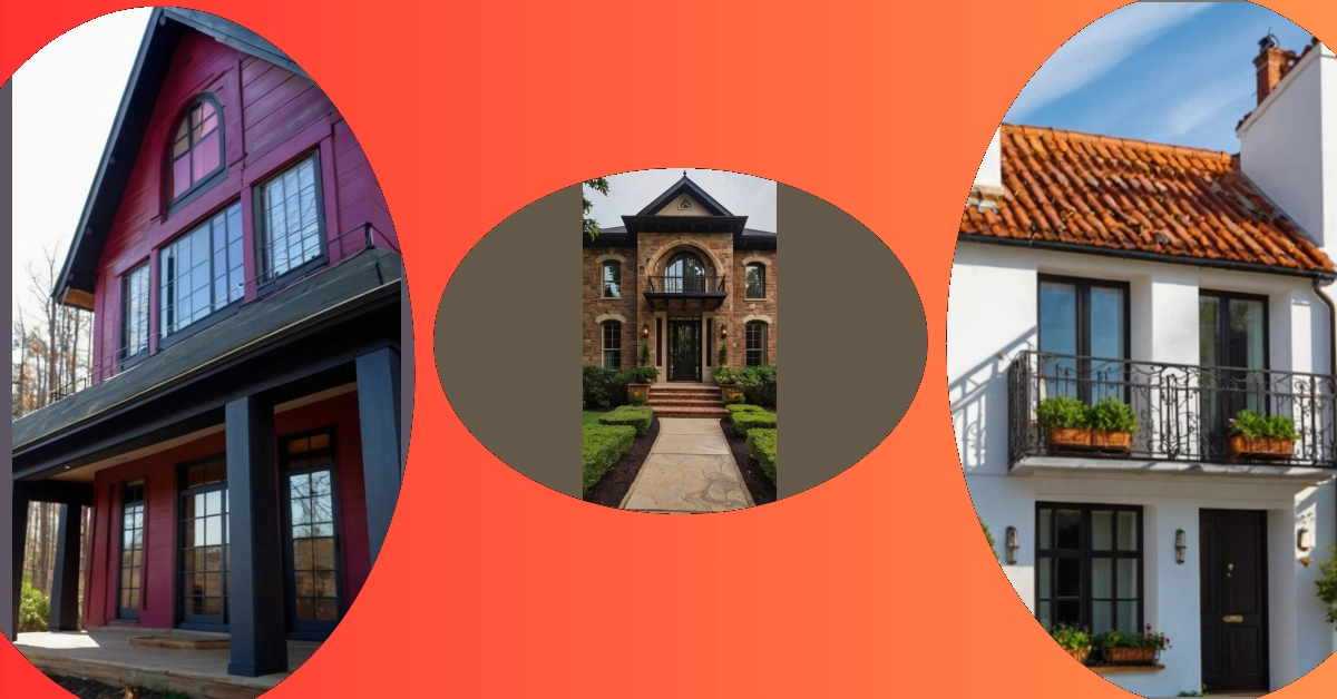 Forget boring beige; this house is bold and sassy, like a superhero in a scarlet cape. Those tall, slender columns are practically begging you to swing on them (don’t actually do that, though!). The arched window at the top gives it a whimsical touch, like a friendly wink. It’s the kind of house that makes you want to wear a matching red outfit and pose dramatically by the front door — just be careful not to get paint on your fancy new clothes!