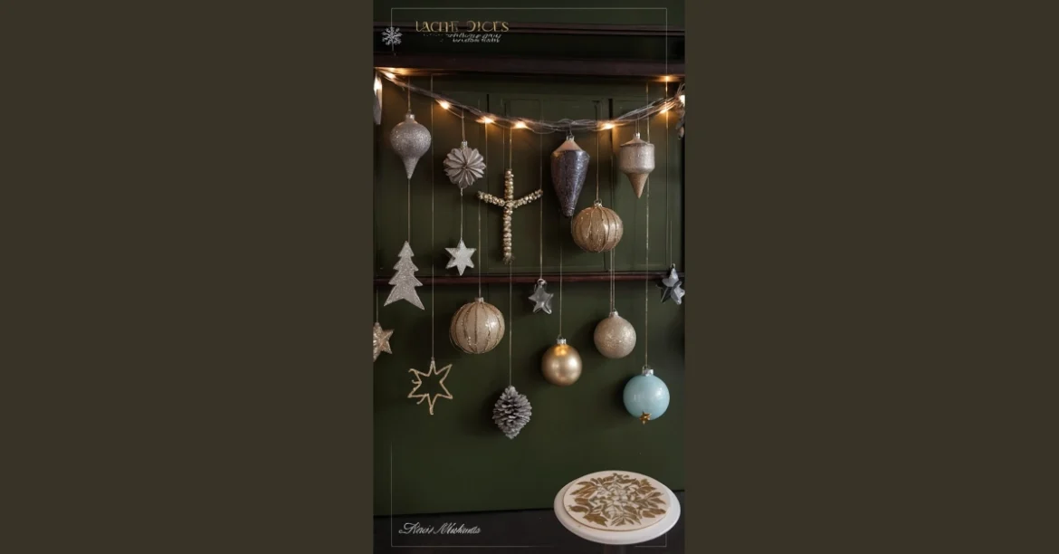 Imagine walking into your favourite coffee shop and BAM! You’re greeted by a dazzling display of Christmas decorations hanging like magical ornaments. This isn’t your grandma’s Christmas tree; we’re talking shimmering stars, glittery baubles, and even a cute little pine cone, all strung together with tiny fairy lights. It’s like someone sprinkled holiday cheer all over the place – perfect for sipping hot chocolate and getting into the festive spirit. This image totally captures that cozy, charming vibe, reminding us that even the simplest decorations can bring big Christmas joy!