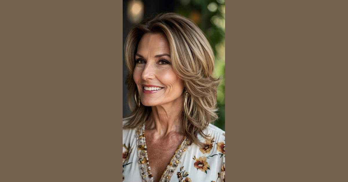 This picture shows a woman who totally rocks the “women over 50 layered haircut” look! Her hair is like a gorgeous, flowing waterfall – long, layered, and full of movement. It’s the kind of hair that makes you want to run your fingers through it (but, hey, maybe ask first!). It proves that age is just a number, and fabulous hair is ageless! Seriously, she looks like she’s ready to conquer the world, one perfectly placed strand at a time.