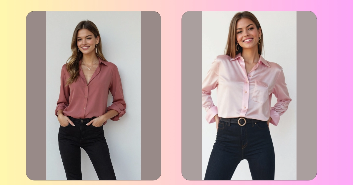 Imagine strolling through a park in this outfit, maybe grabbing coffee with your bestie. The rose pink shirt adds a touch of elegance without being too fussy, and the jeans keep it casual and relaxed. Plus, who doesn’t love a good pair of stylish heels to complete the look? It’s the kind of outfit that makes you feel confident and put-together, without spending hours getting ready. You could totally add your own flair too – maybe a different color of shoes or a fun necklace!