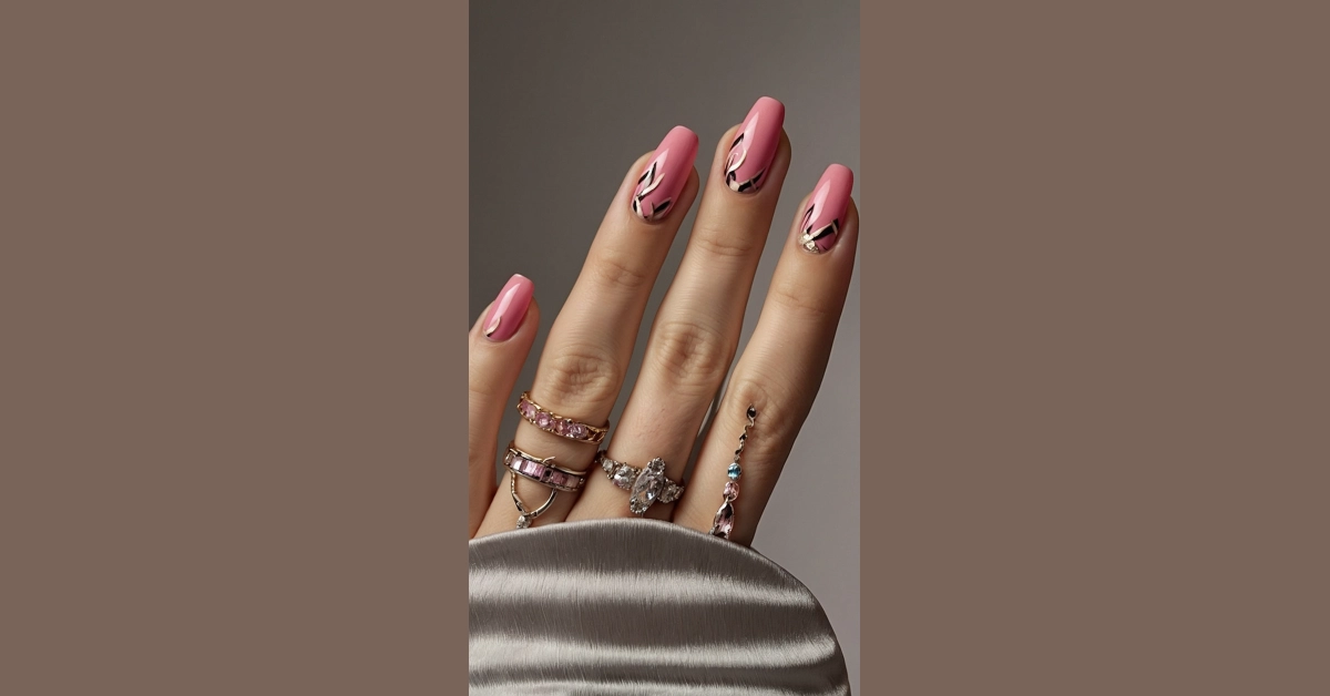 And let’s throw some crome in the mix, shall we? Hot pink nails adorned with crome accents will catch the eye of anyone and everyone around you. Plus, pairing pink with black adds a whole new level of stylish mystery—who doesn’t love a bit of contrast? This mix can give your nails that extra oomph—who knew love could be so edgy?