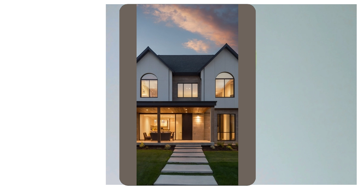 And check out that garage! It’s dark and mysterious, like the entrance to a secret lair… or maybe just a really cool place to park your ride. The lighting is perfect – warm and inviting, it makes you want to pull up a chair on that well-kept lawn and just chill. Seriously, this house screams “modern American dream,” but with a way more stylish and fun twist. No boring beige here!