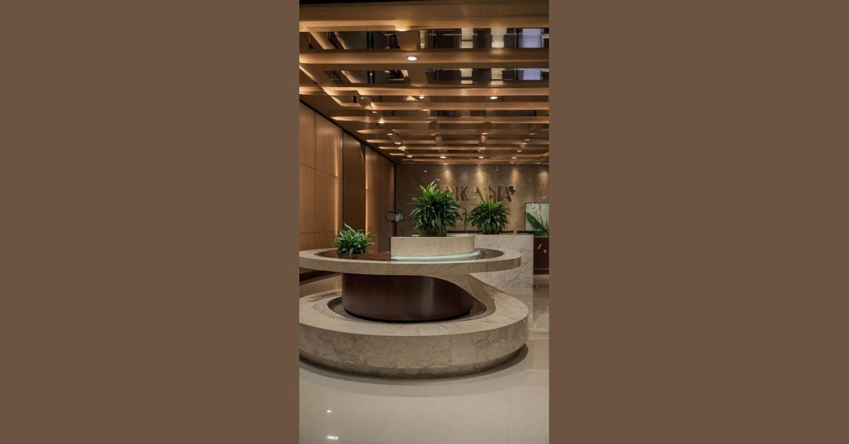 The whole thing feels sophisticated, but in a friendly way, not all stuffy and serious like some lobbies can be. Imagine yourself chilling here, waiting for your appointment or just admiring the art. That metallic sculpture looks like something you’d find in a superhero’s secret lair, except way more chill. You could even pretend you’re the receptionist, handing out keys to awesome rooms – maybe even a secret room with a hidden slide! It’s the kind of lobby that makes you want to stay and hang out, even if you don’t have anywhere to be.