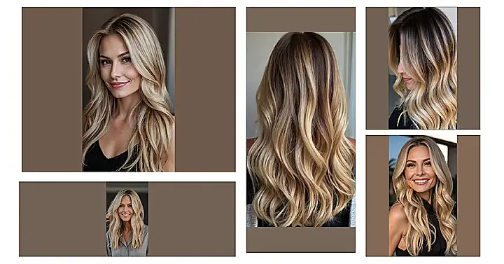 This picture shows a woman with gorgeous, long blonde hair that’s been styled to perfection. It’s like a sun-kissed dream – the kind of hair you’d want to run your fingers through while relaxing on a beach (even if it’s just in your imagination!). The balayage highlights add such a natural, pretty glow; it’s totally Instagram-worthy! Seriously, it’s hair goals!