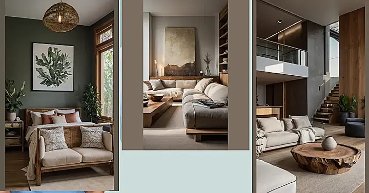 The living room is a wonderful starting point! Let’s consider how a minimalist design with rustic furniture can set the stage for a tranquil haven. Think about unique wooden accents that tell a story, combined with a chic moss rug that adds a fresh and lively touch. Perfect for both lounging and entertaining!