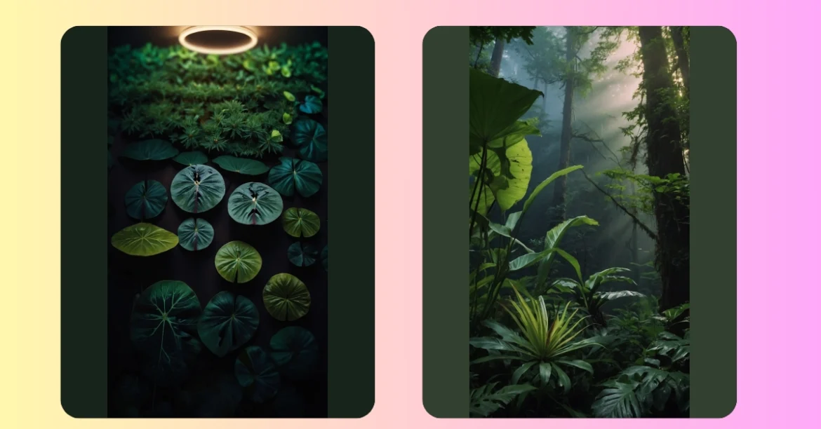 Seriously, who needs a boring old wall when you can have a glowing frame showcasing the amazing power of nature? This ‘nature-inspired wallpaper’ is seriously next level. It’s like a movie scene, all mysterious and dark with just enough light to see the amazing details of the ferns and leaves. It’s a perfect mix of spooky and beautiful; just imagine relaxing in your room, surrounded by this awesome image – your own personal jungle paradise, right there on your wall!