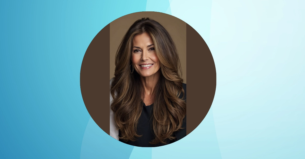 This picture shows a woman who totally rocks the “women over 50 layered haircut” look! Her hair is like a gorgeous, flowing waterfall – long, layered, and full of movement. It’s the kind of hair that makes you want to run your fingers through it (but, hey, maybe ask first!). It proves that age is just a number, and fabulous hair is ageless! Seriously, she looks like she’s ready to conquer the world, one perfectly placed strand at a time.