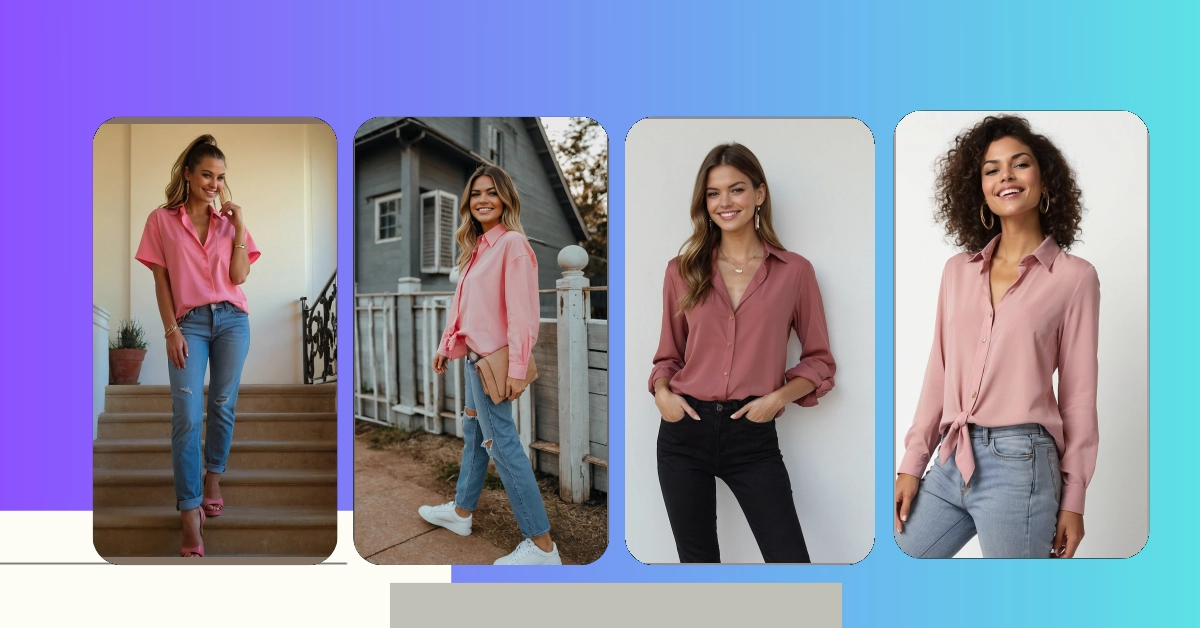 Imagine strolling through a park in this outfit, maybe grabbing coffee with your bestie. The rose pink shirt adds a touch of elegance without being too fussy, and the jeans keep it casual and relaxed. Plus, who doesn’t love a good pair of stylish heels to complete the look? It’s the kind of outfit that makes you feel confident and put-together, without spending hours getting ready. You could totally add your own flair too – maybe a different color of shoes or a fun necklace!