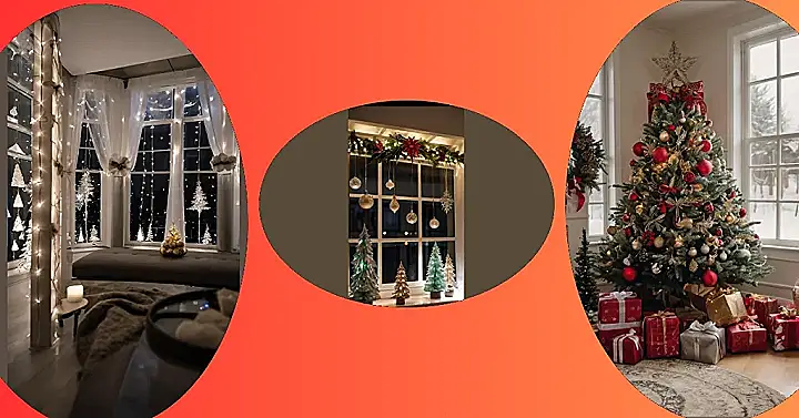 This picture is pure Christmas magic! Imagine snuggling up on a comfy couch, sipping hot cocoa, and gazing out at this dazzling window display. The twinkling lights, sparkly ornaments, and miniature trees create a cozy, enchanting scene that’s perfect for getting into the holiday spirit. It’s like a little winter fairyland right in your own home, proving you don’t need a giant tree to have a seriously festive Christmas.