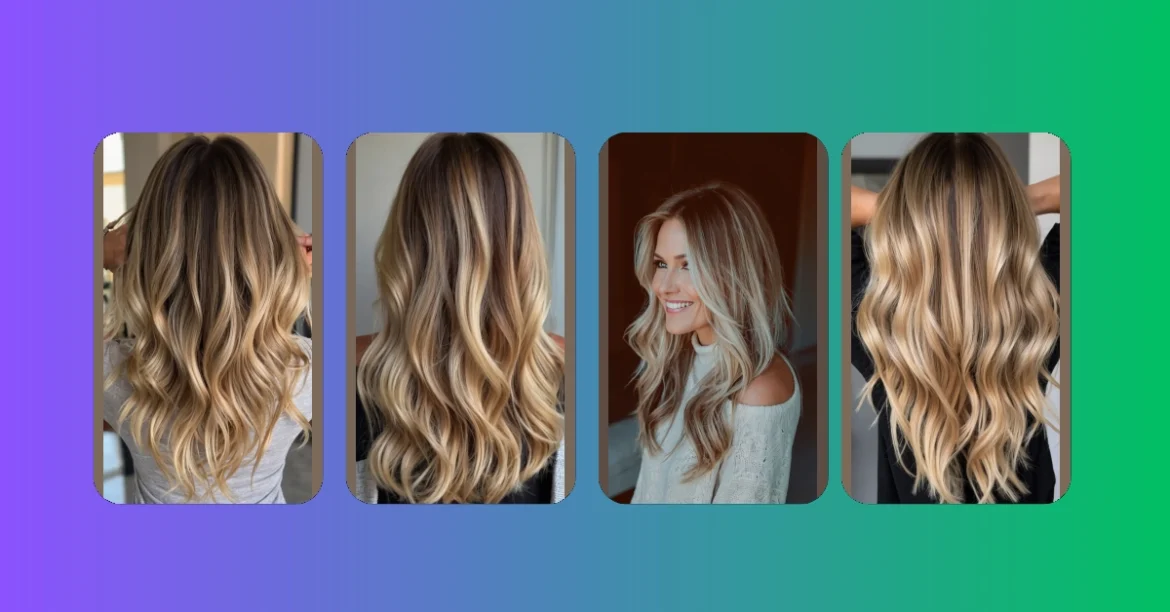 This picture shows a woman with gorgeous, long blonde hair that’s been styled to perfection. It’s like a sun-kissed dream – the kind of hair you’d want to run your fingers through while relaxing on a beach (even if it’s just in your imagination!). The balayage highlights add such a natural, pretty glow; it’s totally Instagram-worthy! Seriously, it’s hair goals!