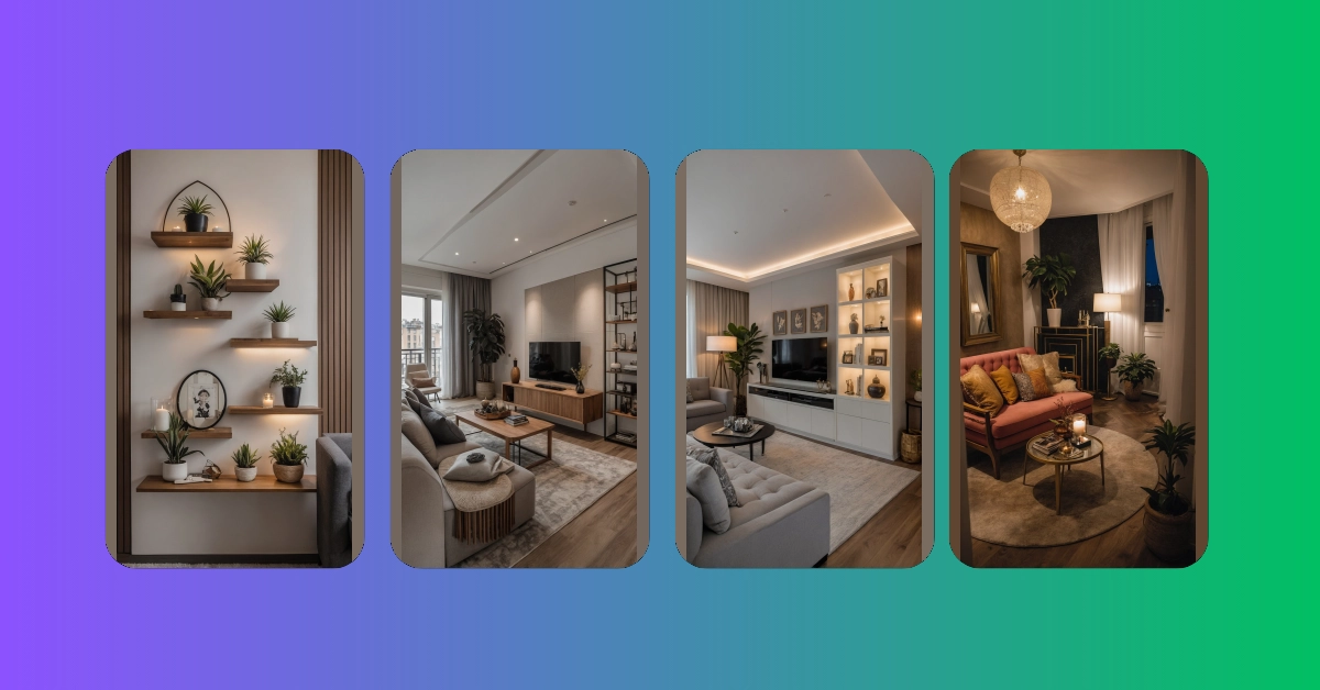 But let’s be real, those plants aren’t the only superstars here. Check out those super cool floating shelves, lit up like tiny spotlights! They’re basically giving your prized possessions – whether it’s a cool candle, a funky mirror, or that one picture where you look surprisingly good – their moment in the spotlight. This setup shows how apartment decorating can turn plain walls into an art gallery of your favorite stuff, making your space feel totally unique and way more grown-up than just shoving everything under your bed. Who knew organizing could look this awesome and make your apartment feel so much more ‘you’?