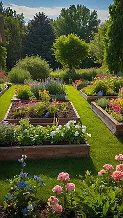 It’s almost too pretty to be true! I bet this flower garden smells amazing, all those lovely blossoms filling the air with sweet scents. And just look at how neatly everything is arranged—it’s like a perfectly planned floral masterpiece! I can only imagine how much fun it would be to take a stroll through such a vibrant and colorful place, maybe even with a picnic basket and a good book. Who needs a fancy art gallery when you’ve got this?