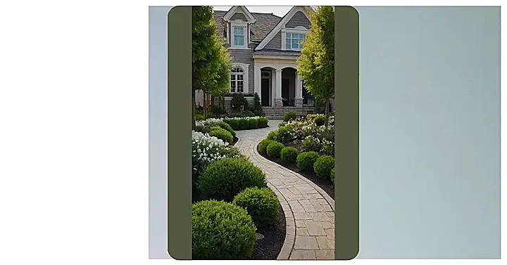 This picture shows a beautiful house with a perfectly manicured lawn. It’s the kind of place you’d expect to find in a magazine, with a winding pathway leading to the front door, surrounded by lush green bushes and flowers. The bushes are so perfectly shaped, it’s like they were sculpted by a professional gardener. It makes you wonder if the homeowner has to spend all day every day making sure everything is just right. Maybe they have a secret army of tiny garden gnomes who work tirelessly on the landscape at night?