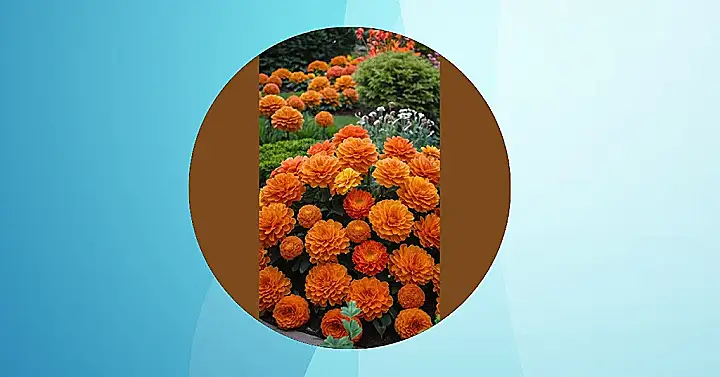 Imagine a garden bursting with the colors of a sunset. That’s exactly what this fall garden looks like! It’s like a bunch of orange and yellow fluffy pom-poms decided to get together and have a party. These flowers are like a giant burst of sunshine that will make you forget all about the colder weather coming.