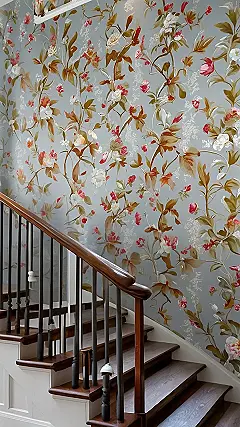 So, picture this: you’re rushing down the stairs, maybe late for school or a hot date, and BAM! Instead of boring old steps, you’ve got this sweet floral wallpaper staring back at you. It’s like a mini art exhibit every time you go up or down. It’s way more exciting than just plain wood and could totally distract you from tripping (maybe, no promises!).