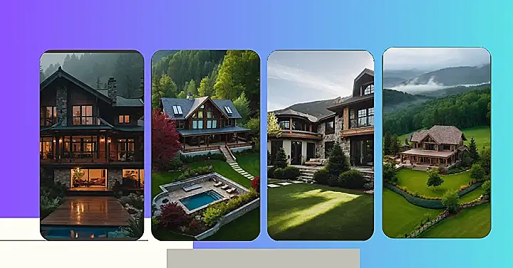 This picture makes me want to grab a comfy sweater, a cup of hot cocoa, and head straight to the woods! Look at that gorgeous cabin nestled in the mountains, with a big backyard and a fence that looks like it was built by a giant! It’s like a dream come true for anyone who loves nature and wants to get away from the city.