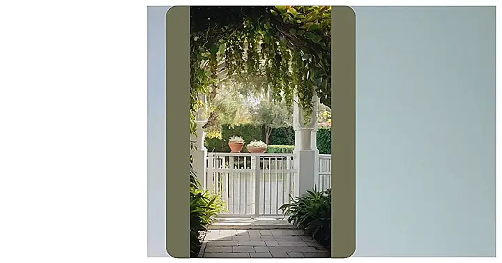 This picture makes me want to grab a cup of tea and sit by that pretty white gate. It looks like a secret passageway to a magical garden, but it’s probably just someone’s backyard. You can tell that whoever owns this place has a real eye for detail, from the way the vines frame the doorway to those perfectly placed potted plants. It’s like something out of a storybook!