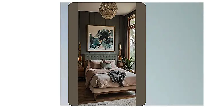 Seriously, though, who needs a vacation when you have this? The dark green walls are surprisingly calming, paired with the warm, inviting lighting and those cool art pieces. It’s like stepping into a peaceful rainforest at night. Plus, that bed looks unbelievably comfy – I bet you could spend a whole weekend there without moving, which honestly, sounds like a pretty good plan to me. Just add some rainforest sounds, and you’ve got yourself the ultimate relaxation station.