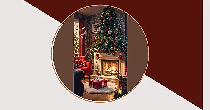 This picture just screams “cozy holiday perfection,” right? We’ve got a Christmas tree so dazzling, it probably makes actual stars jealous, twinkling away with those shiny red and silver ornaments. And check out that fireplace, all toasty and warm, practically begging you to grab a mug of hot chocolate and melt into that super comfy red armchair. It’s the kind of scene that makes you want to cancel all your plans, put on your fuzziest socks, and just soak in all the holiday magic. Even the subtle pattern on the wallpaper seems to be saying, “Yep, this is where all the festive fun happens!”