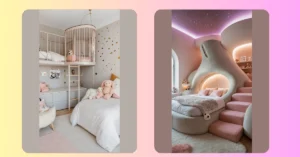 Forget battling for mirror space in the bathroom or losing your favorite brush in a pile of school books! This makeup room design is basically a superstar’s backstage pass, just waiting for you. With those dazzling lights framing the mirror, you’d feel like a total celebrity getting ready for literally anything, even if it’s just a Tuesday morning. Everything from the perfectly organized shelves to the plush white stool screams ‘glam,’ making your daily routine feel less like a chore and more like a fabulous pre-show ritual.