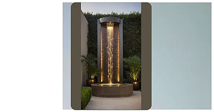 Check out this epic outdoor wall fountain! It’s not just a fancy concrete slab; it’s a full-on liquid light show that transforms any plain wall into the coolest hangout spot. Forget those boring garden gnomes, this thing is like the VIP section of your backyard, especially when it lights up at night. The water just gracefully tumbles down the textured surface, glowing like liquid gold, making you forget all about that mountain of homework. Plus, that gentle trickling sound? Way better than listening to your neighbor’s questionable music choices.