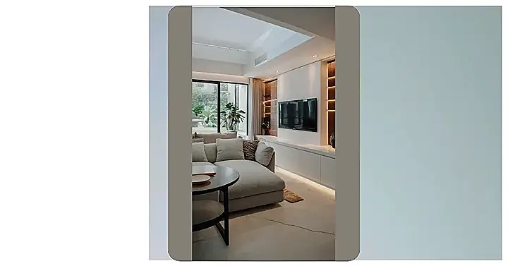 This living room is giving us major “I wish I lived here” vibes! It’s like a magazine spread come to life. The huge, comfy-looking sectional couch screams “come relax and chill,” and all the white and neutral colors make the space feel so peaceful. Plus, those big windows with the sheer curtains make it feel super bright and airy. Even the plants and the mirror add a touch of elegance without being too fancy.