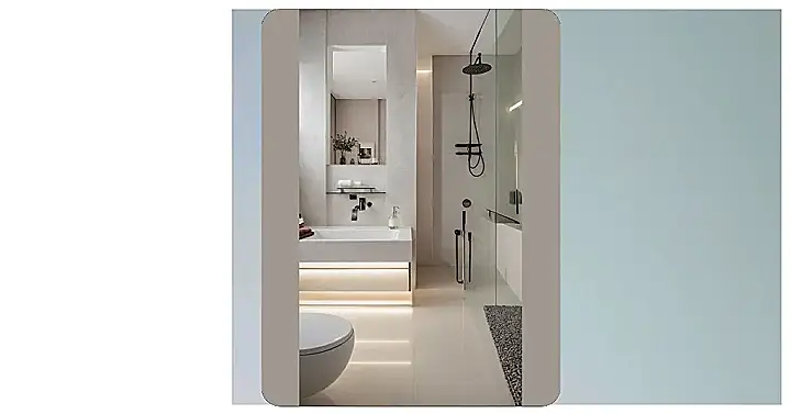 Look closely, and you’ll see this isn’t just any bathroom; it’s a masterpiece of relaxation, minus the awkward small talk you get at a real spa. That super cool shower head looks like it delivers a gentle rainstorm right in your home, and with those shiny gold controls, you’re basically a water-bending wizard. Plus, imagine stepping out onto that ridiculously soft, fluffy rug – it’s probably softer than your pet. This whole bathroom remodel screams “no more cramped, dingy washrooms,” giving you a perfect escape from, you know, everything… like school projects or siblings!