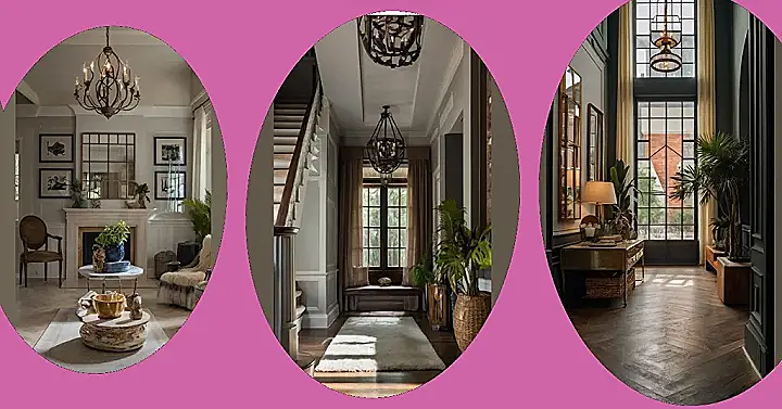 This hallway looks like it’s straight outta a Southern movie, but instead of cowboys and duels, it’s all about fancy lighting and comfy vibes! Seriously, who needs a red carpet when you’ve got a rug that looks like a cloud exploded? Bet you could totally take a nap right there in the middle of the entryway without a care in the world.