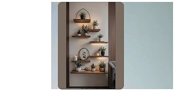 Apartment decorating can sometimes feel like a game of Tetris, especially when you hit those weird, empty corners. Instead of letting them become a black hole for your missing socks or forgotten homework, imagine turning them into a total showstopper! This snazzy shelving unit is basically a glow-up for any neglected nook, looking like a super cool wooden staircase for your plants to chill on. It’s a genius way to add some serious style without eating up precious floor space, leaving more room for dance-offs or epic blanket forts.
