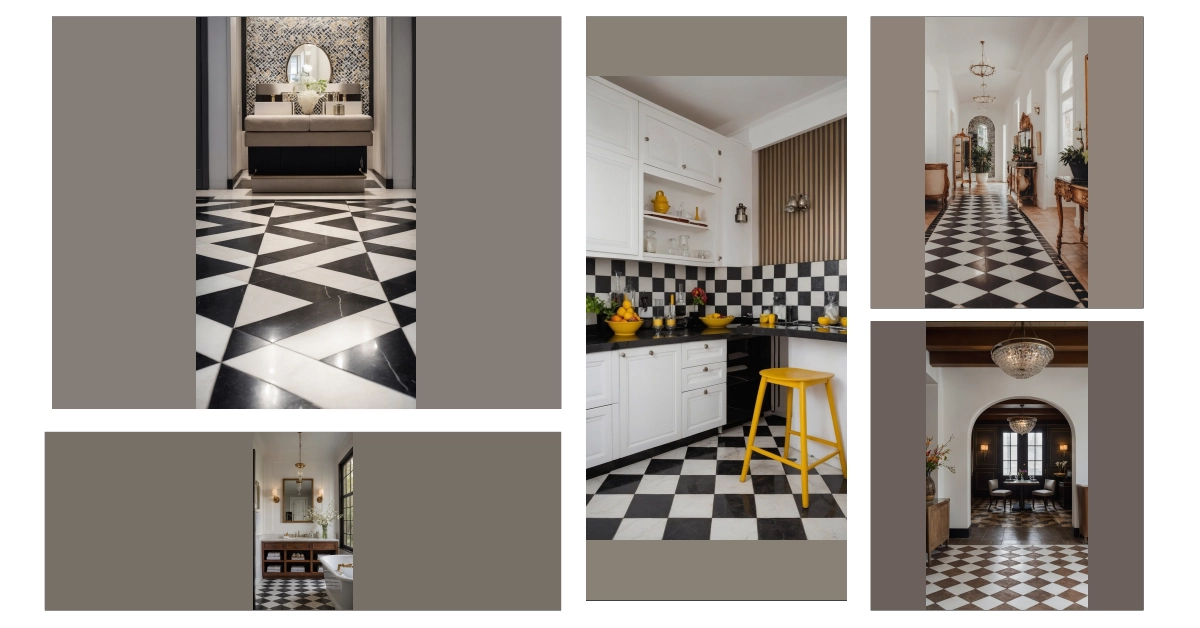 Suddenly, the checkered drama takes a sharp turn, like the floor decided to switch channels mid-show! One moment you’re in a super-stylized, high-contrast world, and the next you’re strolling onto what looks like the floor’s calm, coffee-shop cousin. It’s as if this checkerboard floor tile design for 2026 couldn’t quite commit to being fully bold and decided a ‘half-and-half’ approach was the way to go. So, next time you’re planning your dream room, maybe consider this: a floor that keeps everyone on their toes, wondering if they’re about to start a game or just kick back and relax!