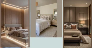 Look up at that wall of pictures – it’s like a cool, abstract party happening right above your head. With all those splashes of colour and wild shapes, it makes the room feel super artistic and definitely not basic. It’s the kind of place where you could totally crash with friends, admire the funky art, and maybe even get inspired to create some messy masterpieces of your own (just maybe not on the orange sofa!). This room screams personality and fun, which is basically the definition of funky.