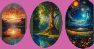 This picture is like a scene straight out of a fairytale! You can almost hear the crunch of leaves under your feet as you walk through a forest full of vibrant orange, red, and yellow trees. The sky is painted with the most amazing colors of pink and purple, like a giant watercolor painting. The water looks so peaceful as it flows over the rocks, making it the perfect place to sit and enjoy the autumn air. It’s like everything is whispering, “Fall is here!”