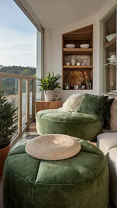 So, you think you need a mansion to have cool decor? Think again! This balcony setup proves that even a teensy space can be totally awesome. With those round green seats and the chill plants, it’s like having a super comfy and stylish secret hideout. Perfect for escaping homework or just daydreaming while looking out at the view.