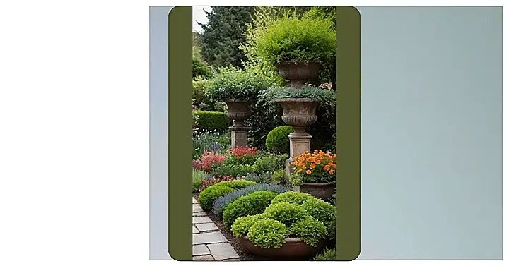 Looking at this garden picture, you might think you need a giant estate to make something this cool, but nope! This is totally how you make a small garden pop off. See all those different levels and cool-shaped bushes and pots? That’s the trick! You don’t need endless space; you just need smart ideas to make your small patch look like it’s overflowing with awesome plants and colors, kind of like stuffing too much good stuff into a tiny backpack, but it somehow works perfectly. It’s like creating your own mini-paradise right outside your door.