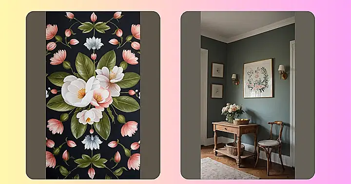 Forget boring beige or plain pastels, this wall decided it wanted a serious glow-up and basically turned itself into a secret garden. I mean, who needs windows when you’ve got this much floral explosion happening right there? It’s like the wall swallowed a botanical garden and is now showing it off. You could practically smell the roses, if only paint had scratch-and-sniff superpowers. Just be careful not to lean too hard into the ‘bushes’, you might end up with a painted leaf stuck to your face, which would make for a funny selfie, I guess.