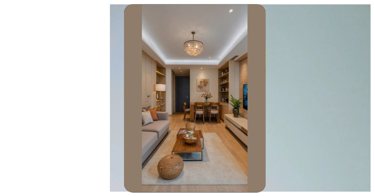 Who says you need a mansion-sized living room to live large? Take a peek at this room – it’s basically giving a masterclass in making a smaller space feel like a five-star lounge! Notice that super comfy-looking, cream-colored sofa? It’s sleek and doesn’t hog all the floor space, leaving plenty of room for your dance-offs (or just, you know, walking around). And check out that fancy gold and glass coffee table. It’s not just for holding your snacks; its see-through top makes the room feel way more open, almost like it’s saying, “Hey, I’m here, but I’m not taking over the whole place!”