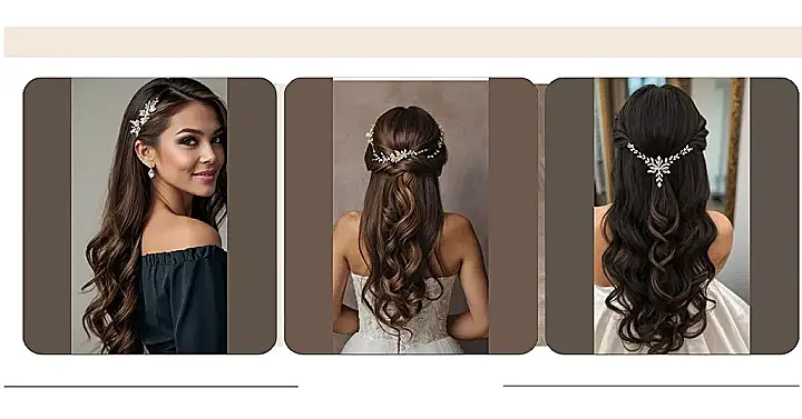 So, you’re getting married and need a hairstyle that screams “elegant” without screaming “I spent hours in a salon”? This picture shows some gorgeous, easy-to-copy styles perfect for a bride who wants to look amazing but still have time to enjoy her big day. Forget complicated updos – these wavy looks are all about effortless chic and a touch of sparkle, thanks to those pretty hair clips! They’re like the perfect accessories for your hair, and they add just the right amount of “wow” factor.
