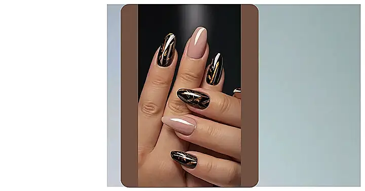 These vacation nails are basically little golden tickets saying, “Get ready to see the world!” They’ve got that classy nude vibe for lounging by the pool like you don’t have a care, mixed with snazzy black and gold patterns that look ready for anything from exploring ancient ruins to just crushing it at mini-golf. Honestly, your fingers will look more prepared for adventure than your actual packing list.