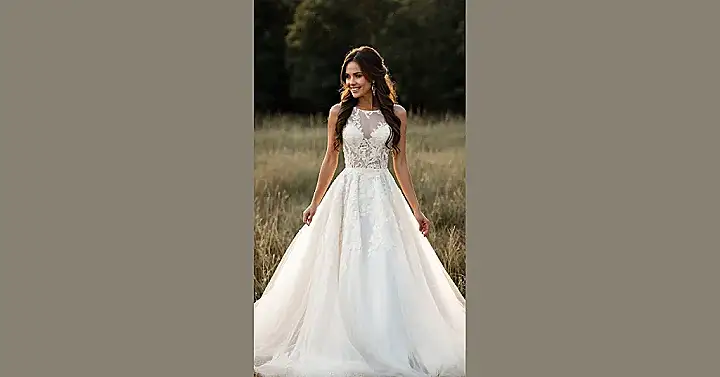 Finding the perfect dream wedding dress is kind of like finding the perfect outfit for prom, but with way more layers and maybe a tiara instead of a corsage. You want something that makes you feel like a million bucks, or at least like you’re starring in your own movie scene. This dress in the picture looks like it’s ready for its close-up, shimmering in the sunlight and making the person wearing it look absolutely radiant. Just try not to spill the punch on it during the reception; that much fabric probably requires a hazard team to clean.