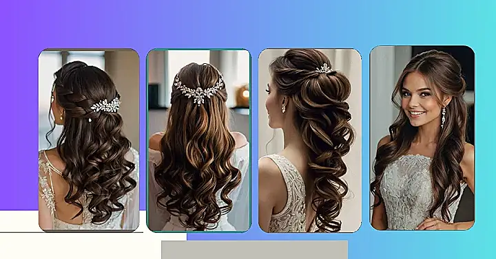 Honestly, this hairstyle is like the perfect compromise between looking super fancy and still being able to dance the night away without accidentally whipping your great aunt with your ponytail. It’s got just enough “done-up” in the front and back, with gorgeous curls cascading down to prove you put in the effort! Seriously, it’s so pretty, it almost makes you want to get married just to wear it. Almost.