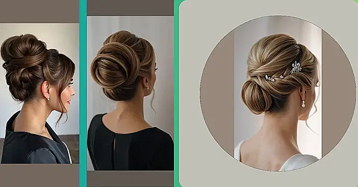 This hairstyle is like a sophisticated bun’s cooler, more stylish cousin! Imagine a beautiful, elegant updo that’s perfect for a wedding—no messy flyaways, just sleek, shiny hair twisted into a gorgeous masterpiece. It’s the perfect balance of fancy and fun, so you can dance the night away without worrying about your hair falling out of place. Plus, it looks amazing with almost any outfit—from a flowy dress to a sharp pantsuit!