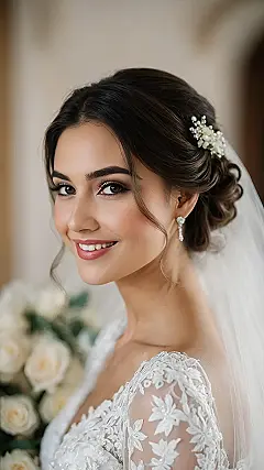 And let’s be real, who wouldn’t want to rock hair this fabulous? It’s not just an updo; it’s a whole mood – a “yes, I woke up like this, but also spent three hours getting ready” kind of mood! With those soft curls framing her face and the delicate veil, she looks like she stepped right out of a fairy tale, or maybe a really good Pinterest board. It makes you think, if this is what romantic wedding hair looks like, what kind of epic hairstyles are we going to see at prom or graduation? This style proves that a little sparkle and a lot of happy vibes can make anyone’s special day feel extra magical, from the top of your head to your dazzling smile!