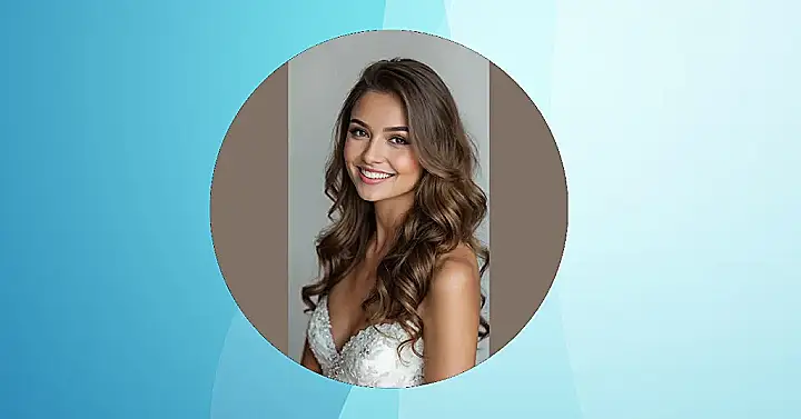 Her hair isn’t just styled; it’s practically glowing with romantic energy! Those soft waves and the delicate headband make her look like she just stepped out of a dream sequence, ready to steal all the spotlight (in a good way, of course!). We bet even her future spouse will be a little distracted by how perfectly her hair frames that lovely smile. This is the ultimate ‘hair goals’ for anyone dreaming of their big day, probably without all the actual pre-wedding hair drama – because let’s face it, getting your hair to look this effortlessly amazing is a superpower!